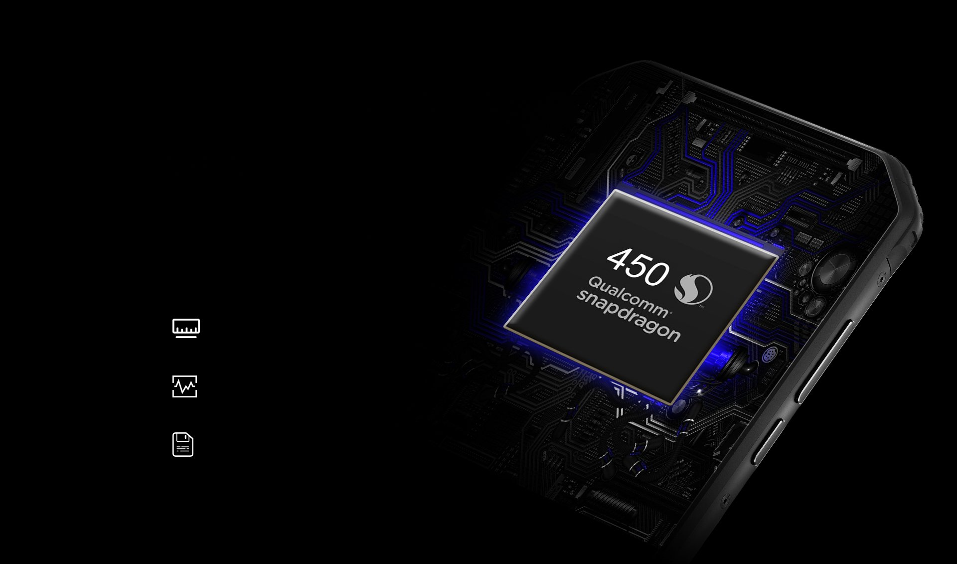 Процессор SDM450 изготовлен по 14нм техпроцессу и обеспечивает высокую производительность первоклассных смартфонов, при этом он не прожорливый к батарее. Поддержка на аппаратном уровне бокэ-эффекта, гигабитных сетей X9 LTE, видеопроцессор Qualcomm Adreno 506. SDM450 разработан специально для высокоскоростной связи, ярких эффектов, высокой производительности и энергоэффективности.