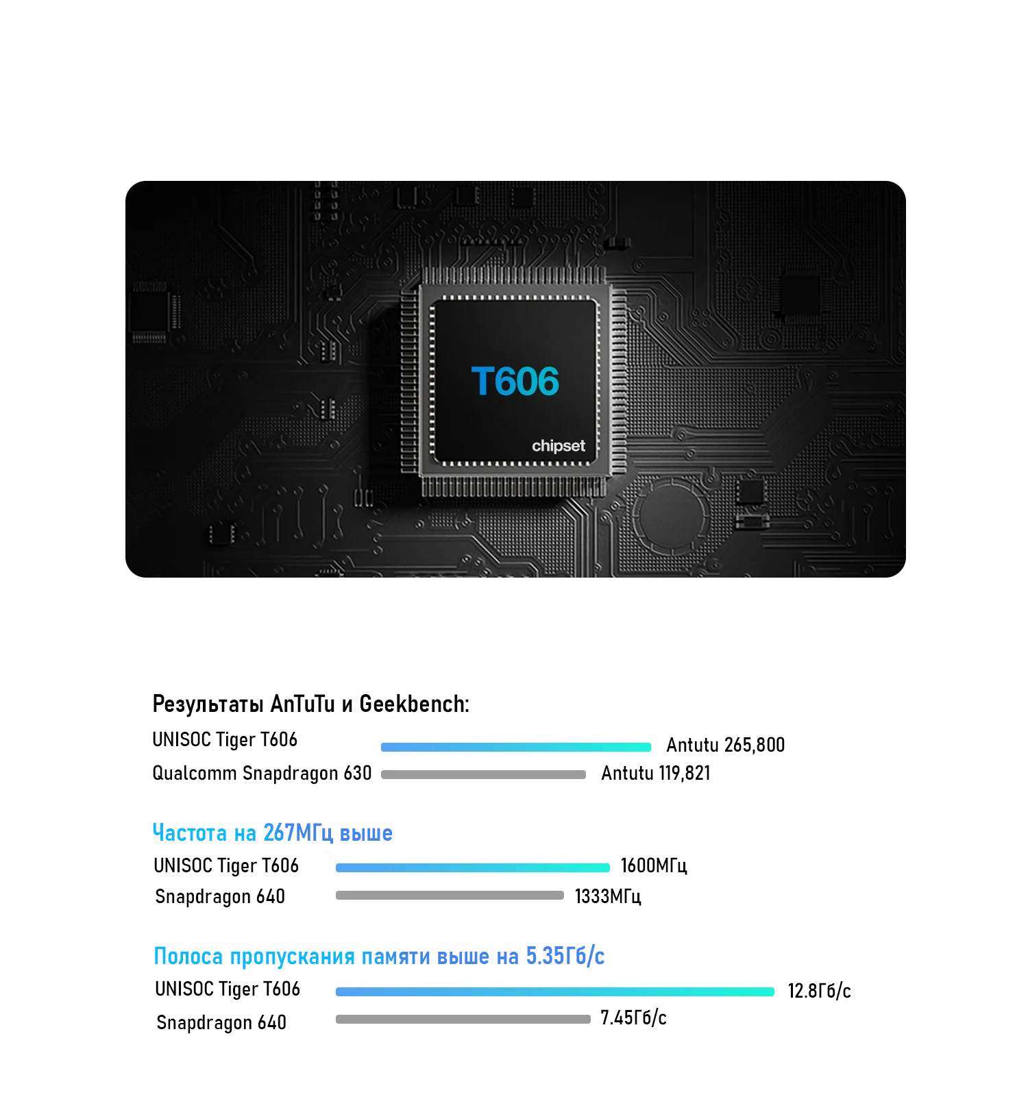 8-ядерный процессор T606, выполненный по 12нм техпроцессу, обеспечивает высокую энергоэффективную производительность AGM H6 на целый день.